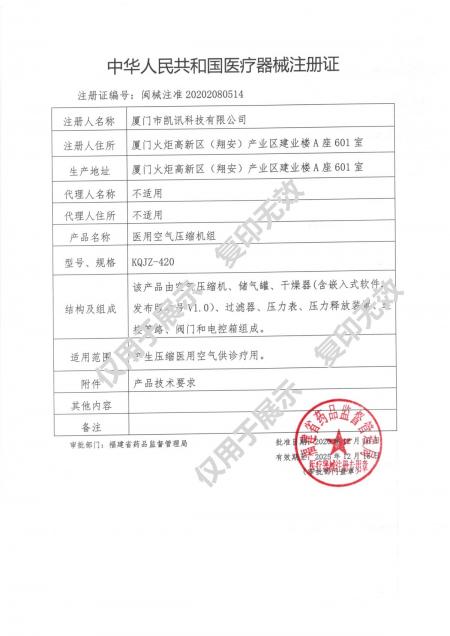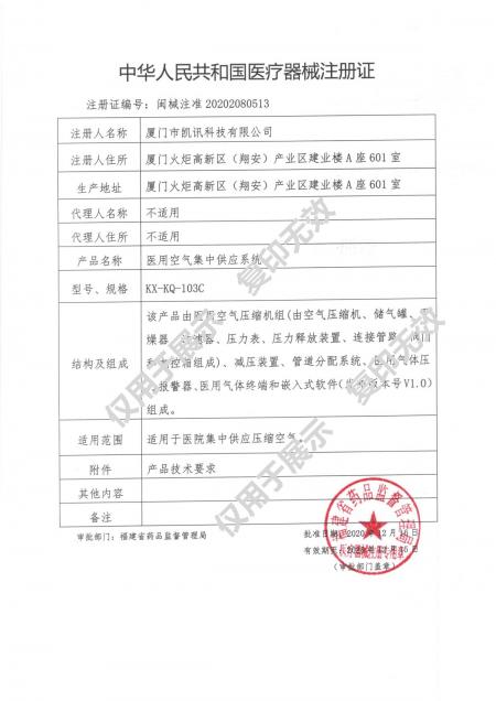 醫(yī)用空氣集中供應(yīng)系統(tǒng)(閩械注準(zhǔn)20202080513)