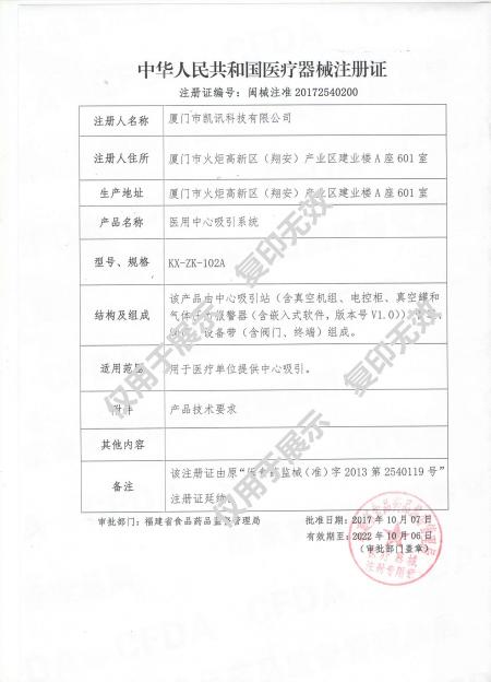 醫(yī)用中心吸引系統(tǒng)(閩械注準(zhǔn)20172540200)