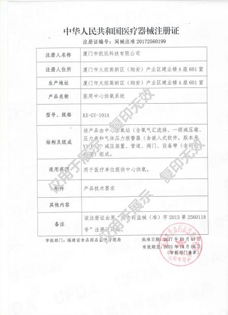 醫(yī)用中心供氧系統(tǒng)(閩械注準(zhǔn)20172560199)